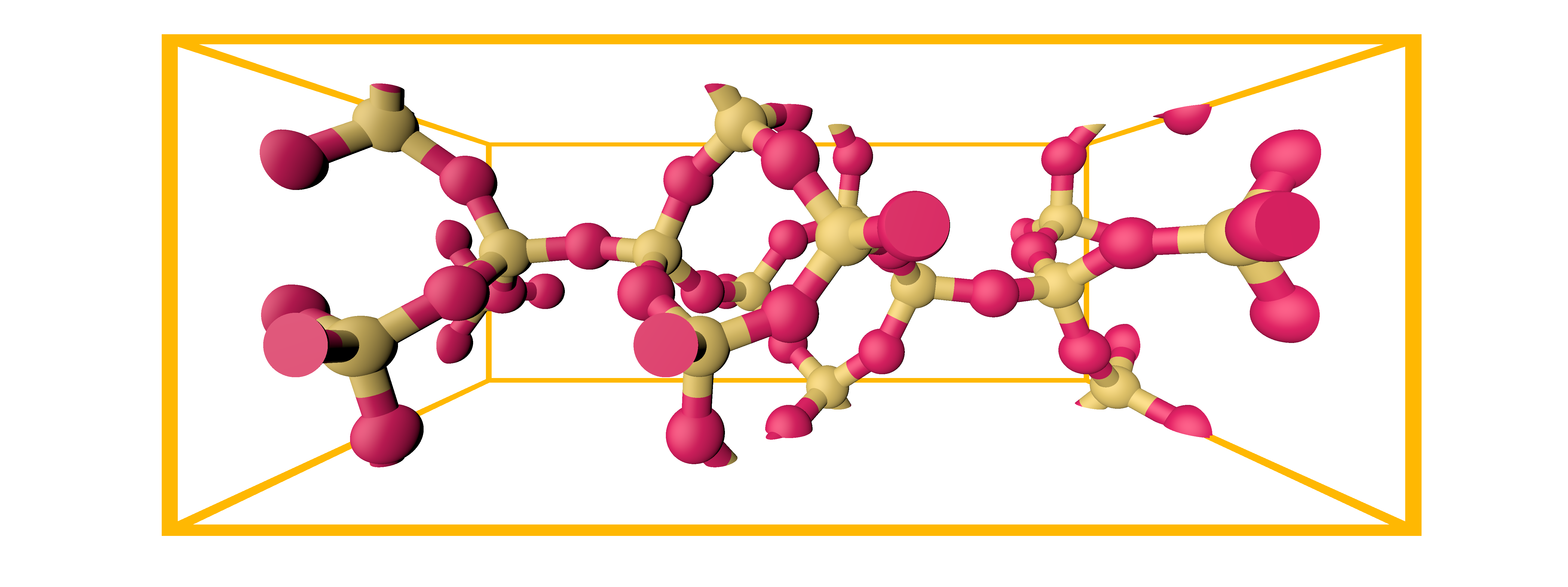 While now we have all the objects that should lie in the box, they also stick out of the sides. We can prevent this by cropping them inside and only rendering the parts of each atom and bond that actually lie within the bounds of the box.